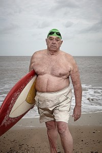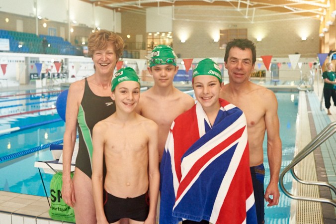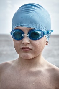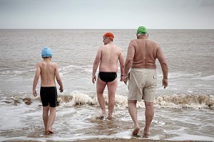A series of images of swimming enthusiasts on the cold and overcast day. Three generations of Swimmers preparing to enjoy their hobby. Skills are passed on from generation to generation. Yet age is no boundary to having fun.