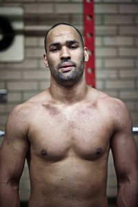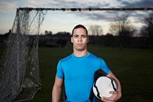 A series of portraits of Rugby players in the changing room before the game.