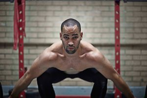 A series of images based on weight lifting. A single male weight lifter is working out on his own.