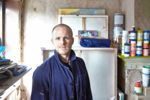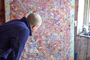 A series of images based on a Artist in his studio.