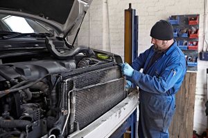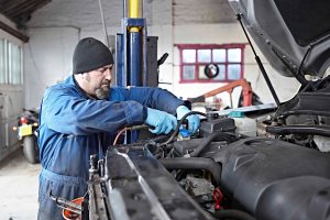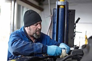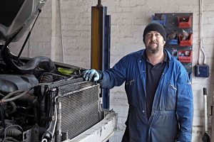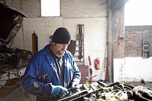 A series of images showing a mechanic at work in his garage.