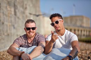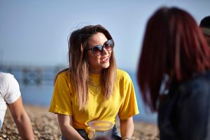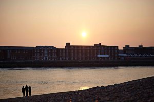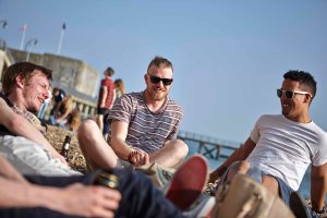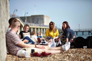 A series of images showing friends enjoying the beach and views of Portsmouth.